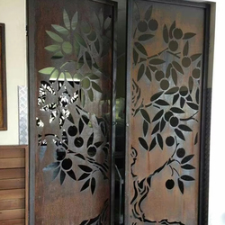 Puerta de metal cortada con láser con patrones intrincados para la entrada del apartamento