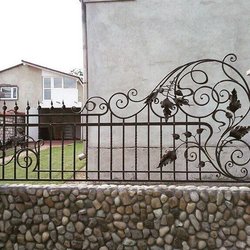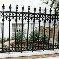 Valla de jardín de hierro forjado con remates decorativos y piquetes fuertes