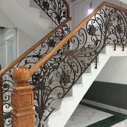 Escalera de hierro curvada personalizada con Barandillas forjadas a mano