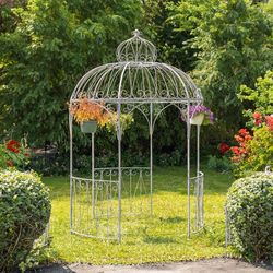Gazebo grande para exteriores con paneles ornamentales cortados con láser CNC Edificios de jardín con recubrimiento en polvo